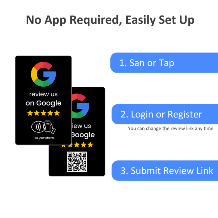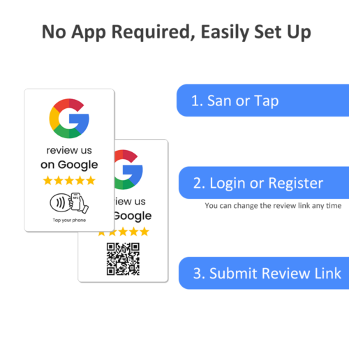 Ready to be used upon receipt: The pre-programmed Google review link is ready to use upon receipt.