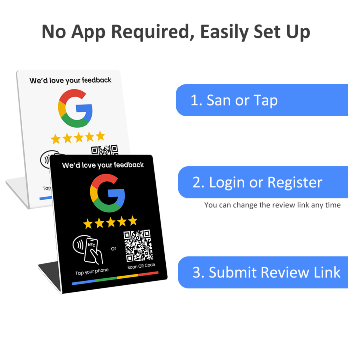 Ready to be used upon receipt: The pre-programmed Google review link is ready to use upon receipt.